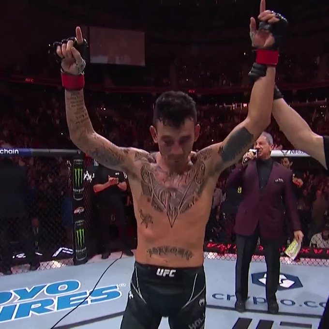 However, he could not land the same heavy blow again, and Holloway began to fight back, delivering a series of painful body kicks. Holloway regained his momentum and took control of the fight.